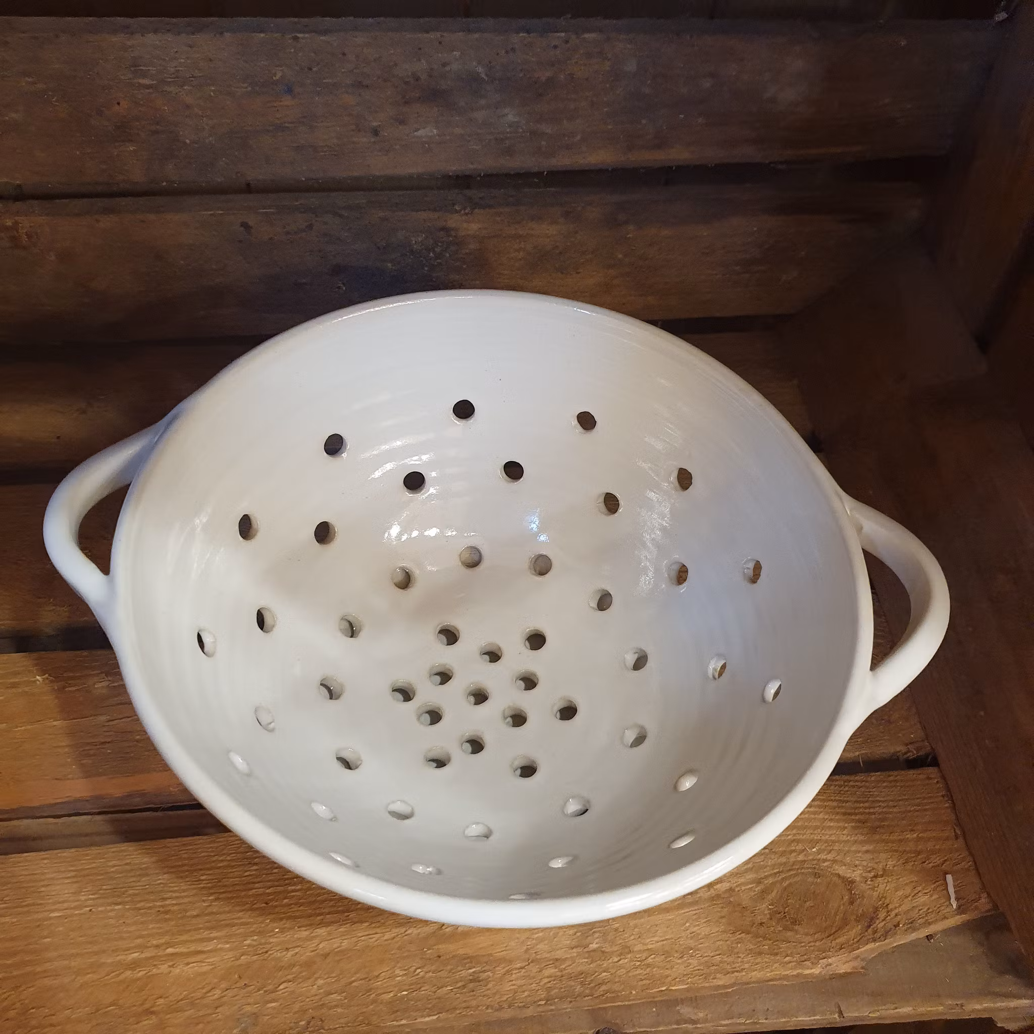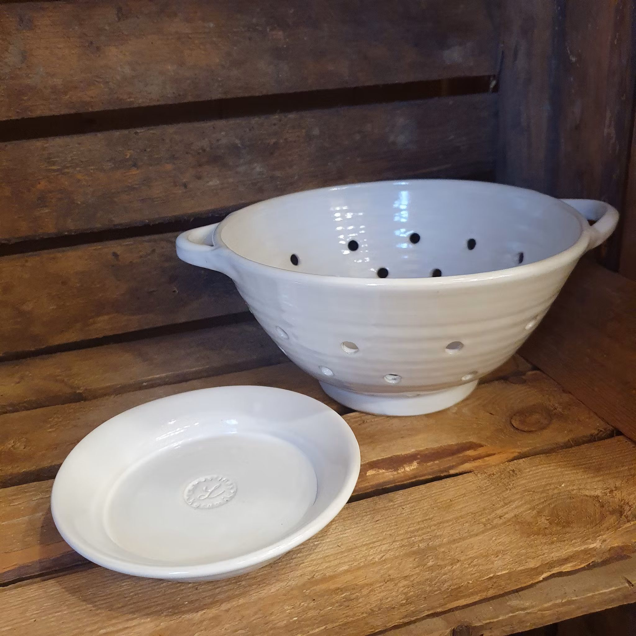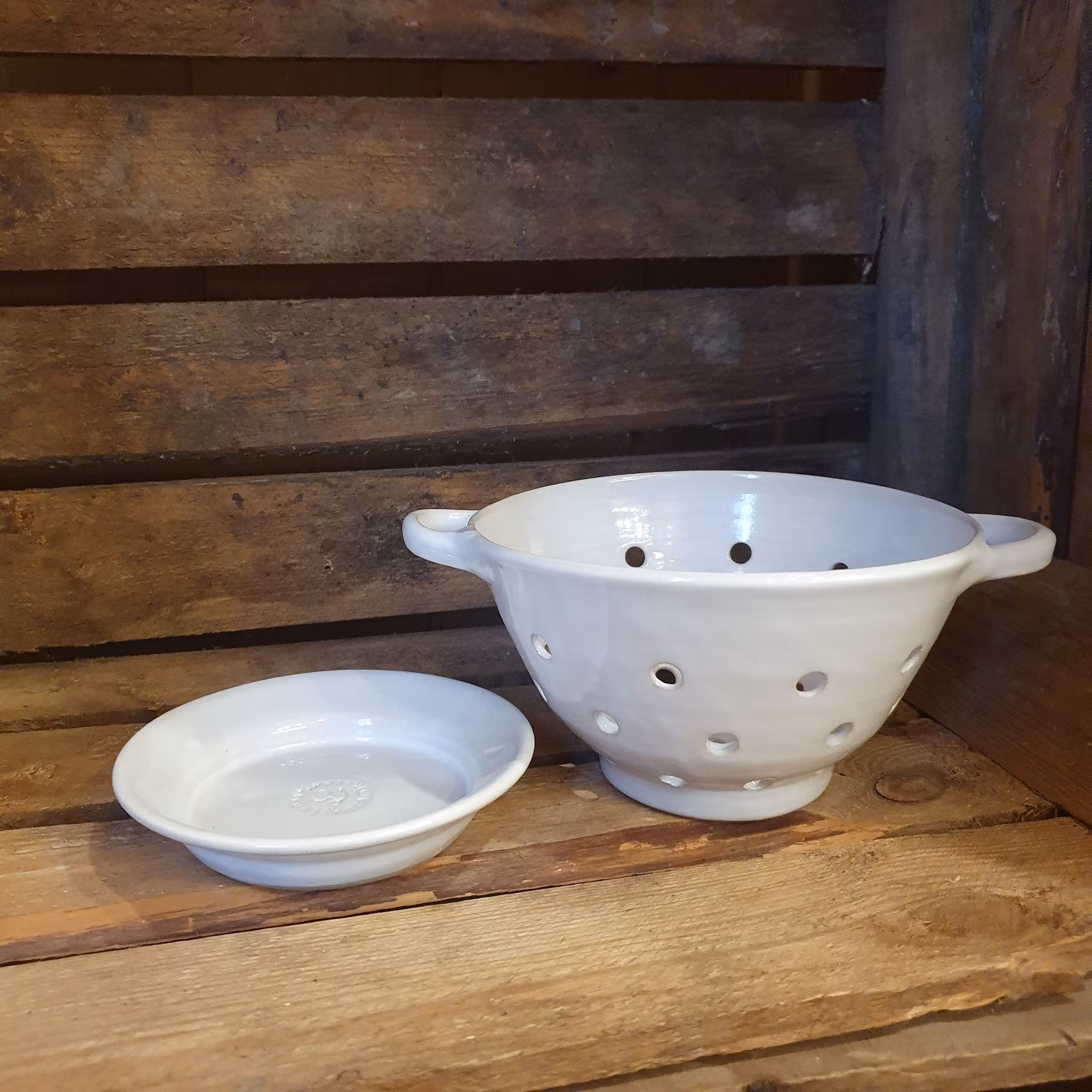 Durkslagen finns i två storlekar och två olika kulörer, vitt och grönt.