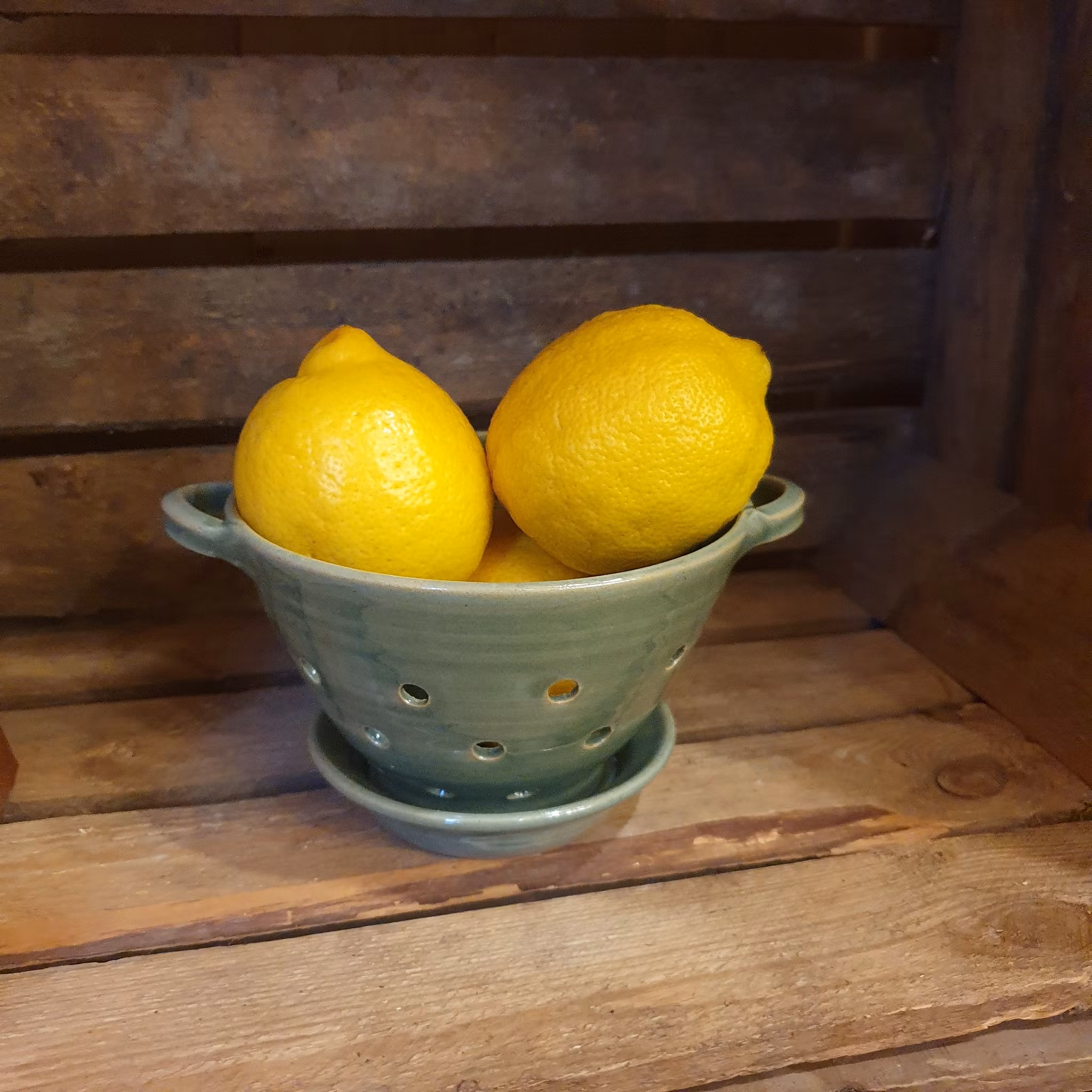 Det lilla durkslaget är precis lagom till en ask körsbärstomater. Fint att ha framme på köksbänken. Det stora fyllt med äpplen pryder sin plats i köket med nyttigheter.