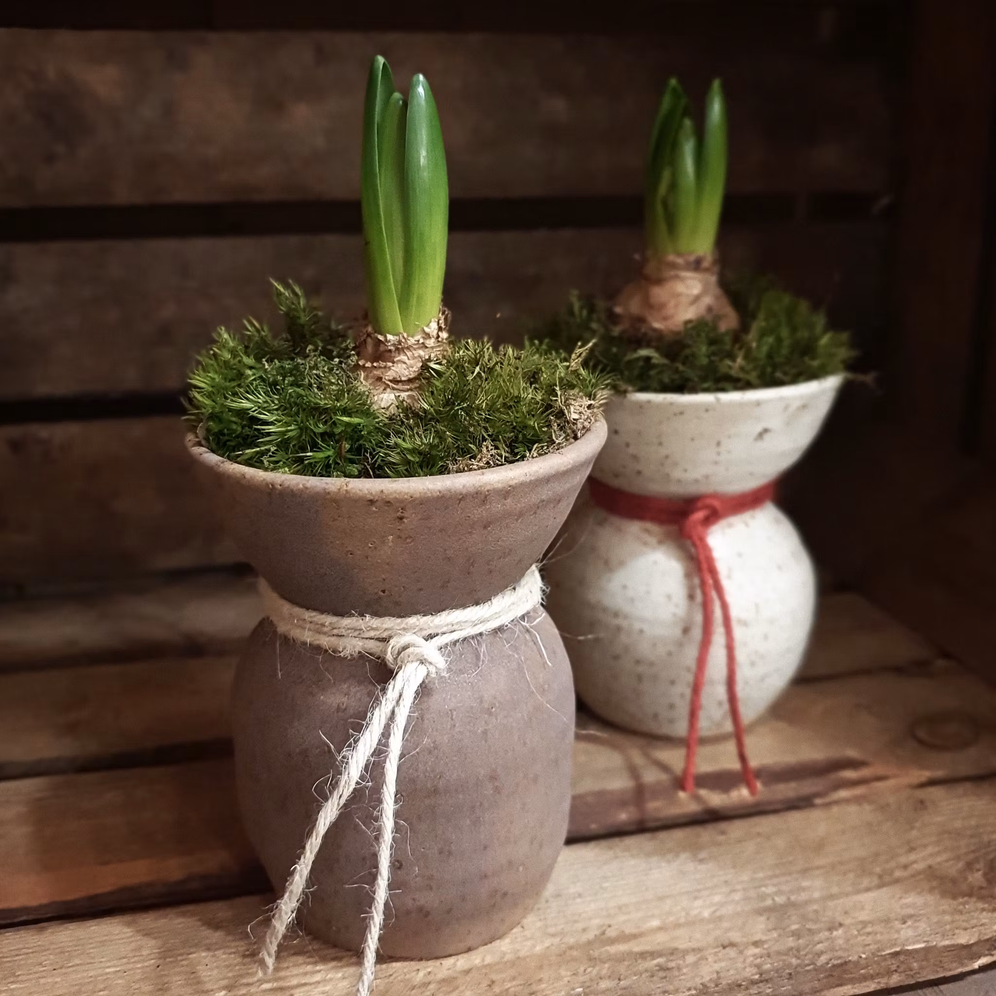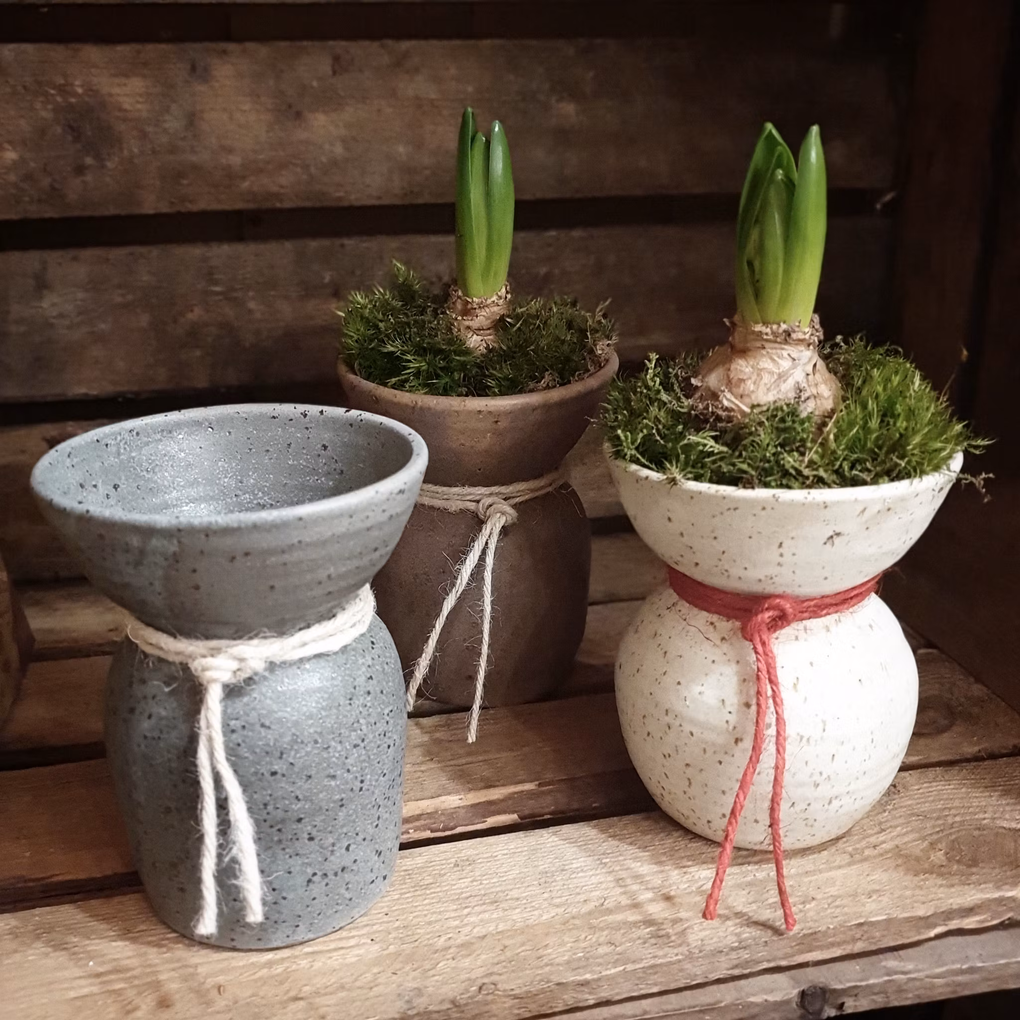 Trevlig vas som passar fint till en hyacint eller annan lökväxt med lite mossa runt löken. Blir vacker även med ett knippe lingonris, några syrenkvistar eller en bukett sommablommor.